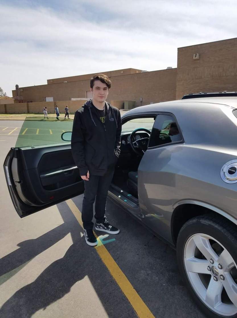 Last March Zane started to search for a car for Joe and I to buy him. We made a deal with him that his ‘job’ would be school as long as he maintained straight A’s. So he searched and would send me pictures of cars and the details. It seemed as though every car had something wrong with it…price wasn’t right, too many miles, body damage, year model wasn’t quite right for the price, etc. Then came along a dark silver gray 2012 Dodge Challenger with low miles, one owner, no previous wrecks. Winner winner chicken dinner. But it was quite the adventure to get this car. The dealership was already in the process of showing it to another customer but after I said I had cash on hand they gladly started talking. Zane had a neurosurgeon appointment on a Tuesday afternoon so we test drove the car right after. We both fell in love. Whomever owned the car loved it, for it was well taken care of. I told Zane a little white lie that the other person bought it when Joe and I actually did. Joe was at work so my mom, his Pawpaw and I surprised him at school during lunch that Thursday before spring break started. All of his squad knew what we were up to. It was so much fun to plan.