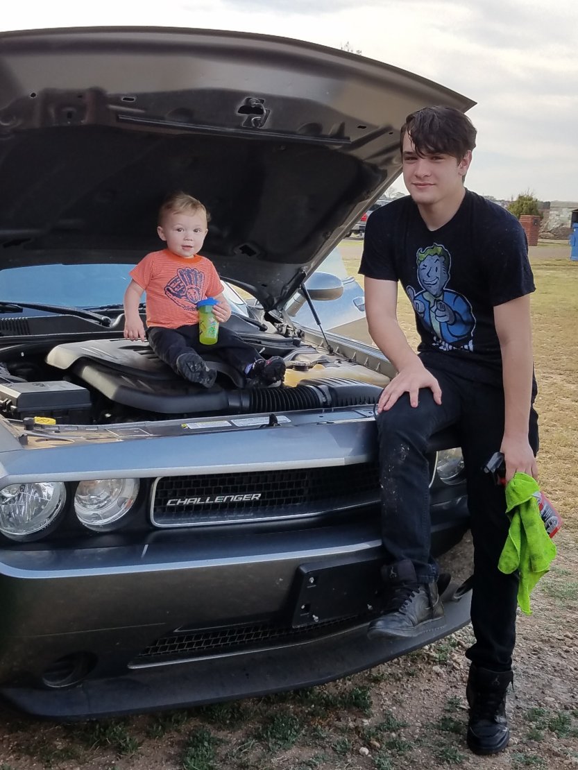 Friday morning I was driving to Lubbock for work, sun in my eyes, visor down. I would seem to think all of my things in the visor are secure, I even have extra paper clips to hold lose papers. Out of one of the pockets a card slid out so I pushed it back it not looking at it. It slid back out. So I looked at it. **sigh** it was the business card from the car dealership where we got Zane’s Challenger in March of 2017. Funny thing is that I get in that pocket often and that card has never been in there before π€·. Oh Zane you have your ways of showing up π.